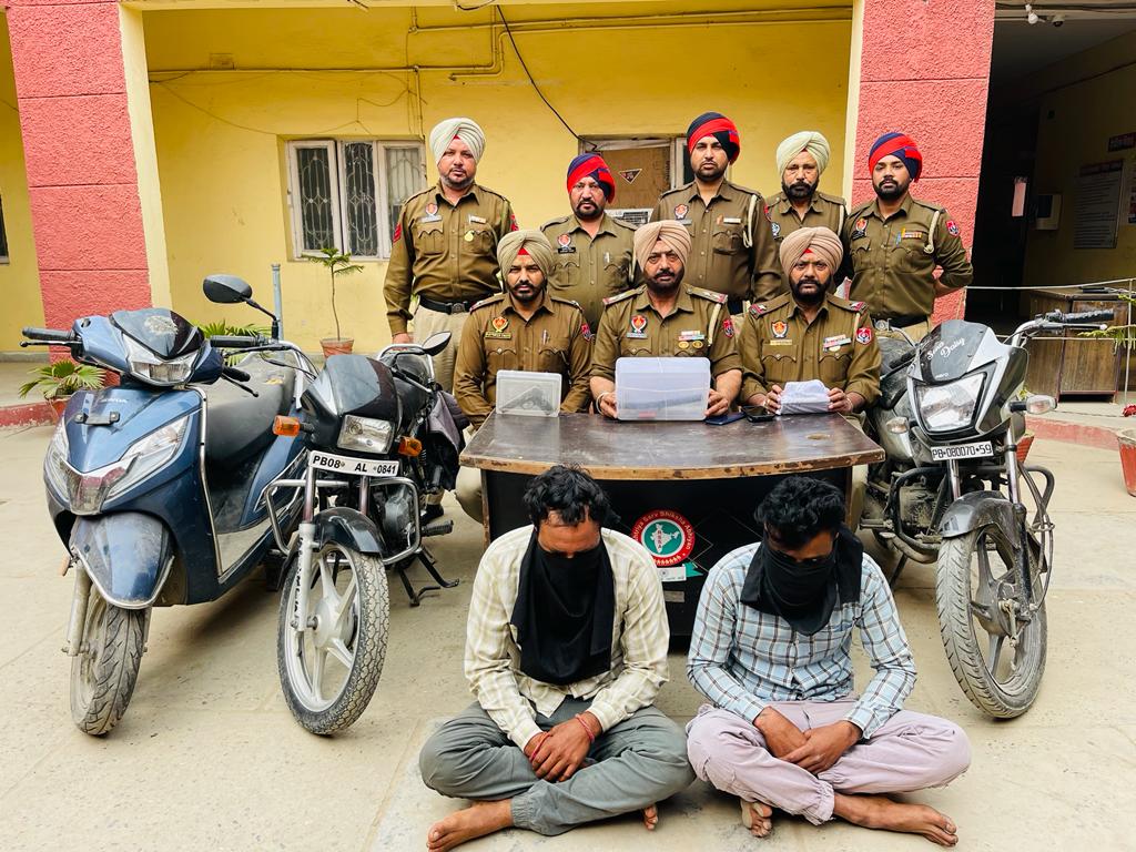 ਜਲੰਧਰ ਦਿਹਾਤੀ ਆਦਮਪੁਰ – ਸਵਰਨਦੀਪ ਸਿੰਘ ਪੀ.ਪੀ.ਐਸ. ਸੀਨੀਅਰ ਪੁਲਿਸ ਕਪਤਾਨ, ਜਲੰਧਰ (ਦਿਹਾਤੀ) ਜੀ ਵਲੋਂ ਦਿੱਤੇ ਗਏ ਦਿਸ਼ਾ ਨਿਰਦੇਸ਼ ਅਨੁਸਾਰ ਸਮਾਜ ਦੇ ਭੈੜੇ ਅਨਸਰਾਂ/ਨਸ਼ਾ ਤਸਕਰਾਂ/ਲੁੱਟਾਂ ਖੋਹਾਂ ਦੀਆਂ ਵਰਦਾਤਾਂ ਕਰਨ ਵਾਲਿਆਂ ਖਿਲਾਫ ਚਲਾਈ ਗਈ ਵਿਸ਼ੇਸ਼ ਮੁਹਿਮ ਤਹਿਤ ਸਰਬਜੀਤ ਸਿੰਘ ਬਾਹੀਆ ਪੀ.ਪੀ.ਐਸ, ਪੁਲਿਸ ਕਪਤਾਨ (ਇੰਨਵੈਸਟੀਗੇਸ਼ਨ) ਅਤੇ ਸ਼੍ਰੀ ਸਰਬਜੀਤ ਰਾਏ ਪੀ.ਪੀ.ਐਸ ਉਪ ਪੁਲਿਸ ਕਪਤਾਨ, ਸਬ-ਡਵੀਜਨ ਆਦਮਪੁਰ ਦੀ ਯੋਗ ਅਗਵਾਈ ਹੇਠ ਸਹਾਇਕ ਇੰਸ: ਸਿਕੰਦਰ ਸਿੰਘ ਵਿਰਕ ਮੁੱਖ ਅਫਸਰ ਥਾਣਾ ਆਦਮਪੁਰ ਦੀ ਪੁਲਿਸ ਪਾਰਟੀ ਵੱਲੋਂ ਲੁੱਟ ਖੋਹਾਂ ਦੀਆਂ ਵਾਰਦਾਤਾਂ ਕਰਨ ਵਾਲੇ ਗਿਰੋਹ ਦਾ ਪਰਦਾ ਫਾਸ਼ ਕਰਦੇ ਹੋਏ 12 ਮੋਟਰਸਾਇਕਲ, (1 ਦੇਸੀ ਕੱਟਾ, ()1 ਖਿਡਾਉਣਾ ਪਿਸਤੋਲ ਬ੍ਰਾਮਦ ਕਰਨ ਵਿੱਚ ਵੱਡੀ ਸਫਲਤਾ ਹਾਸਲ ਕੀਤੀ ਹੈ। ਇਸ ਸਬੰਧੀ ਪ੍ਰੈਸ ਨੂੰ ਜਾਣਕਾਰੀ ਦਿੰਦੇ ਹੋਏ ਸਰਬਜੀਤ ਰਾਏ ਪੀ.ਪੀ.ਐਸ, ਉਪ ਪੁਲਿਸ ਕਪਤਾਨ ਸਬ-ਡਵੀਜਨ ਆਦਮਪੁਰ ਜੀ ਨੇ ਦੱਸਿਆ ਕਿ ਸਬ ਡਵੀਜਨ ਵਿੱਚ ਪੈਂਦੇ ਥਾਣਿਆਂ ਦੇ ਇਲਾਕਾ ਵਿੱਚ ਹੋ ਰਹੀਆਂ ਵਾਰਦਾਤਾਂ ਨੂੰ ਠੱਲ ਪਾਉਣ ਲਈ ਵੱਖ ਵੱਖ ਜਗ੍ਹਾ ਤੇ ਨਾਕਾਬੰਦੀ ਕੀਤੀ ਹੋਈ ਸੀ ਨਾਕਾਬੰਦੀ ਦੌਰਾਨ ਰਾਜਨ ਪੁੱਤਰ ਦਿਨੇਸ਼ ਵਾਸੀ ਪਿੰਡ ਮਹਿਮਦਪੁਰ, ਥਾਣਾ ਆਦਮਪੁਰ, ਜਿਲ੍ਹਾ ਜਲੰਧਰ ਨੇ ਆ ਕੇ ਦੱਸਿਆ ਕਿ ਮਿਤੀ 18.02.2023 ਨੂੰ ਵਕਤ ਕ੍ਰੀਬ 06, 50 ਸ਼ਾਮ ਉਹ ਅਤੇ ਉਸਦਾ ਦੋਸਤ ਸ਼ਰਨਜੀਤ ਵਾਸੀ ਖੁਰਦਪੁਰ ਥਾਣਾ ਆਦਮਪੁਰ, ਜਿਲ੍ਹਾ ਜਲੰਧਰ ਮੋਟਰਸਾਈਕਲ ਮਾਰਕਾ ਪਲਸਰ ਪਰ ਸਵਾਰ ਹੋ ਕੇ ਅਲਾਵਲਪੁਰ ਤੋਂ ਆਦਮਪੁਰ ਸਾਈਡ ਨੂੰ ਆ ਰਹੇ ਸੀ ਅਤੇ ਰਸਤੇ ਵਿੱਚ ਗਾਂਧੀ ਹਸਪਤਾਲ ਨੇੜੇ ਚੁੱਕ ਕੇ ਗੱਲਬਾਤ ਕਰਨ ਲਗ ਪਏ ਤਾਂ ਇਨ ਨੂੰ 02 ਮੰਨ ਨੌਜਵਾਨ ਮੋਟਰਸਾਈਕਲ ਹੀਰੋ ਹਾਂਡਾ ਸਪਲੈਂਡਰ ਪਰ ਆਏ ਅਤੇ ਮੁਦਈ ਮੁਕਦਮਾ ਨੂੰ ਪਿਸਤੌਲ ਦਿਖਾ ਕੇ ਉਸ ਦੀ ਜੈਕਟ ਦੀ ਅਗਲੀ ਜੇਬ ਵਿਚੋਂ 02 ਮੋਬਾਇਲ ਜਬਰਦਸਤੀ ਖੋਹ ਕਰਕੇ ਆਪਣੇ ਮੋਟਰਸਾਈਕਲ ਨੰਬਰ PB08 AL.0841 ਪਰ ਸਵਾਰ ਹੋ ਕੇ ਅਲਾਵਪੁਰ ਸਾਈਡ ਨੂੰ ਭੱਜ ਗਏ।ਜਿਹਨਾਂ ਦੀ ਬਾਅਦ ਵਿਚ ਮੁਦਈ ਨੇ ਪਹਿਚਾਣ ਕੀਤੀ ਕਿ ਨੀਰਜ ਭੱਟੀ ਪੁੱਤਰ ਦੇਵ ਰਾਜ ਵਾਸੀ ਮਹਿਮਦਪੁਰ ਥਾਣਾ ਆਦਮਪੁਰ, ਜਿਲ੍ਹਾ ਜਲੰਧਰ ਅਤੇ ਸੁਮਿੰਦਰਜੀਤ ਸਿੰਘ ਉਰਫ ਸੰਨੀ ਉਰਵ ਬਿਲਾ ਪੁੱਤਰ ਲਾਲ ਸਿੰਘ ਵਾਸੀ ਧੁਦਿਆਲ ਥਾਣਾ ਆਦਮਪੁਰ, ਜਿਲ੍ਹਾ ਜਲੰਧਰ ਵਜੋਂ ਪਹਿਚਾਨ ਹੋਈ।ਜਿਸ ਤੇ ASI ਰਵਿੰਦਰ ਸਿੰਘ ਵਲੋਂ ਦੋਸ਼ੀਆਂ ਖਿਲਾਫ ਮੁਕੱਦਮਾ ਮੁ:ਨੰ: 24 ਮਿਤੀ 19.02.2023 ਅੱਧ 379-8, 34 ਤਾਂ ਦ 25/54/59 ਅਸਲਾ ਐਕਟ ਥਾਣਾ ਆਦਮਪੁਰ ਦਰਜ ਕਰਕੇ ਮੁੱਢਲੀ ਤਫਤੀਸ ਅਮਲ ਵਿਚ ਲਿਆਂਦੀ ਜੋ ਮੁਕਦਮਾ ਦੀ ਤਫਤੀਸ਼ ਜਾਰੀ ਹੈ।