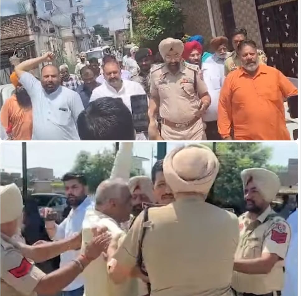 ਜਾਲੰਧਰ (ਖ਼ਾਸ): ਜਾਲੰਧਰ ਦੇਹਾਤ ਵਿੱਚ ਬੀਜੇਪੀ ਦੇ ਨੇਤਾਵਾਂ ਨੂੰ ਪੁਲਿਸ ਵੱਲੋਂ ਹਿਰਾਸਤ ਵਿੱਚ ਲਿਆ ਗਿਆ। ਸ਼ਾਹਕੋਟ ਦੇ ਰੂਪੇਵਾਲੀ ਅਤੇ ਲਾਂਬੜਾ ਖੇਤਰ ਵਿੱਚ ਕੇ.ਡੀ. ਭੰਡਾਰੀ ਅਤੇ ਸਾਬਕਾ ਸੰਸਦ ਮੈਂਬਰ ਸੁਸ਼ੀਲ ਰਿੰਕੂ ਨੂੰ ਪੁਲਿਸ ਨੇ ਰੋਕ ਕੇ ਹਿਰਾਸਤ ਵਿੱਚ ਲਿਆ। ਇਸ ਦੌਰਾਨ ਕੇ.ਡੀ. ਭੰਡਾਰੀ ਅਤੇ ਪੁਲਿਸ ਵਿਚਕਾਰ ਧੱਕਾਮੁੱਕੀ ਦੀ ਵੀਡੀਓ ਵੀ ਸਾਹਮਣੇ ਆਈ ਹੈ।