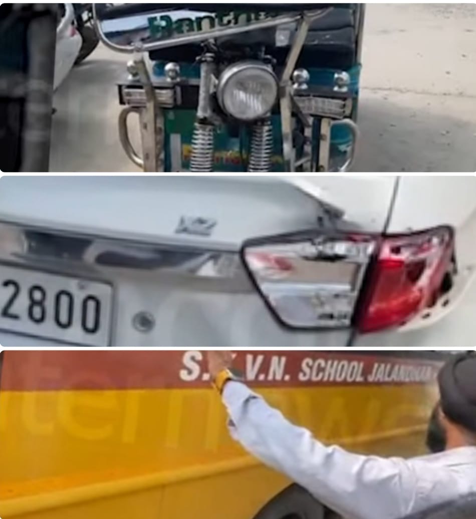 ਜਲੰਧਰ : ਜੇ ਐਸ ਸੰਧੂ ਤੇ ਕੰਵਲਜੀਤ ਸਿੰਘ ਮੱਕੜ – ਜਲੰਧਰ ਦੇ ਪਠਾਨਕੋਟ ਚੌਕ ਨੇੜੇ ਅੱਜ ਸਵੇਰੇ ਇੱਕ ਵੱਡਾ ਹਾਦਸਾ ਹੋਣ ਤੋਂ ਬਚ ਗਿਆ। S.K.V.N ਸਕੂਲ ਬੱਸ, ਜਿਸ ਵਿੱਚ ਦਰਜਨਾਂ ਨੰਨੇ–ਮੁੰਨੇ ਬੱਚੇ ਸਵਾਰ ਸਨ, ਨੇ ਲਾਪਰਵਾਹੀ ਨਾਲ ਦੋ ਵਾਹਨਾਂ ਨੂੰ ਟੱਕਰ ਮਾਰ ਦਿੱਤੀ। ਇਸ ਹਾਦਸੇ ਕਾਰਨ ਈ-ਰਿਕਸ਼ਾ ਚਾਲਕ ਦੇ ਸਿਰ ‘ਤੇ ਗੰਭੀਰ ਚੋਟਾਂ ਆਈਆਂ ਹਨ। ਸਥਾਨਕ ਲੋਕਾਂ ਦੀ ਮਦਦ ਨਾਲ ਜ਼ਖ਼ਮੀ ਨੂੰ ਤੁਰੰਤ ਕਪੂਰ ਹਸਪਤਾਲ ਵਿੱਚ ਦਾਖ਼ਲ ਕਰਵਾਇਆ ਗਿਆ।