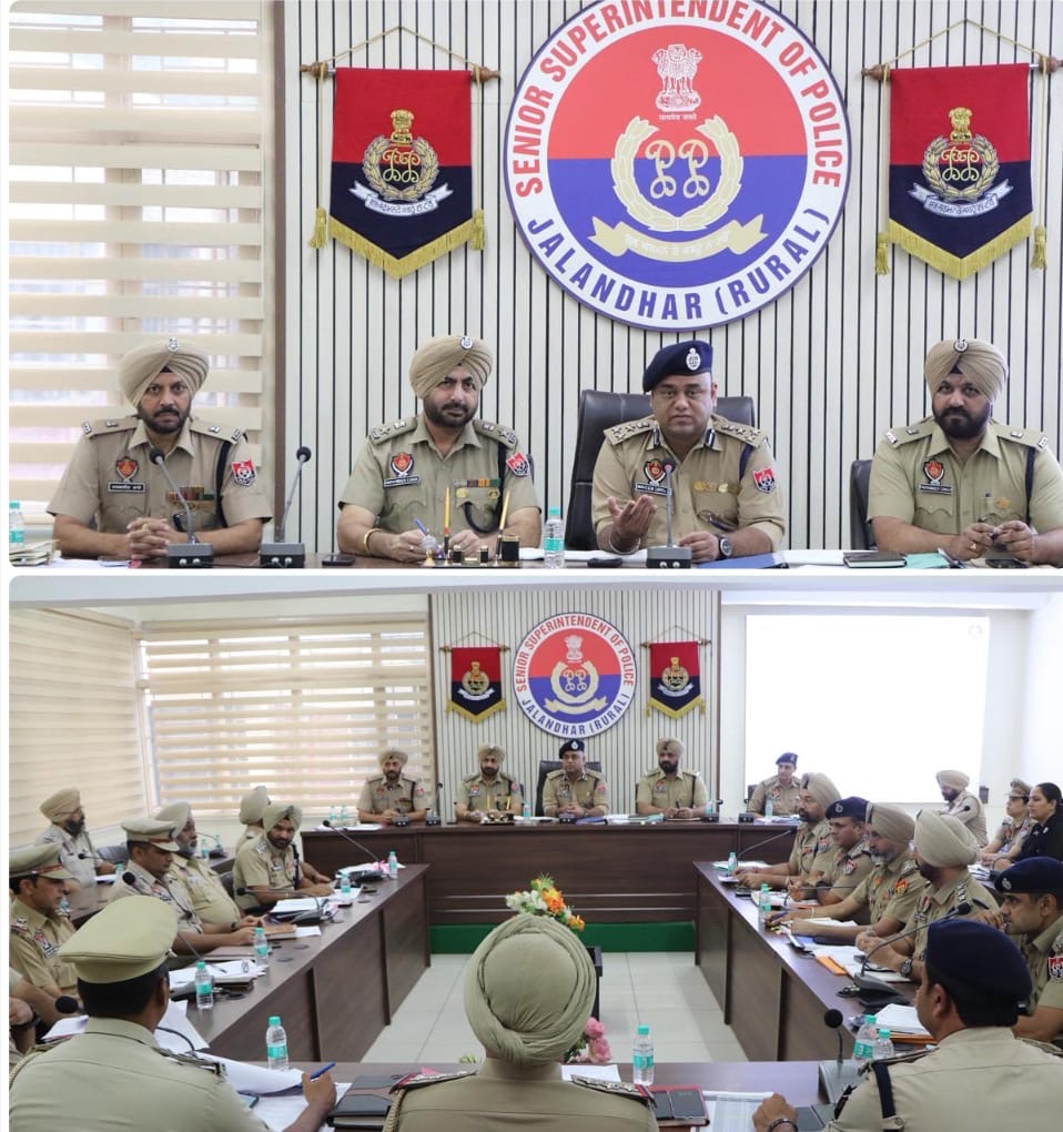 ਜਲੰਧਰ ਦਿਹਾਤੀ ਵਿੱਚ ਨਸ਼ਾ, ਅਪਰਾਧ ਅਤੇ ਭ੍ਰਿਸ਼ਟਾਚਾਰ ਵਿਰੁੱਧ ਚੱਲ ਰਹੀ ਪੁਲਿਸ ਮੁਹਿੰਮ ਨੂੰ ਹੋਰ ਮਜ਼ਬੂਤ ਕਰਨ ਲਈ ਅੱਜ ਇੱਕ ਮਹੱਤਵਪੂਰਨ ਮੀਟਿੰਗ ਦਾ ਆਯੋਜਨ ਕੀਤਾ ਗਿਆ। ਇਸ ਮੀਟਿੰਗ ਦੀ ਅਗਵਾਈ ਜਲੰਧਰ ਰੇਂਜ ਦੇ ਡਿਪਟੀ ਇੰਸਪੈਕਟਰ ਜਨਰਲ ਆਫ਼ ਪੁਲਿਸ (DIG) ਸ਼੍ਰੀ ਨਵੀਨ ਸਿੰਗਲਾ ਆਈ.ਪੀ.ਐਸ. ਵੱਲੋਂ ਕੀਤੀ ਗਈ।