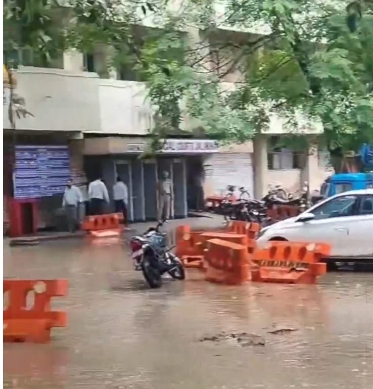 ਅੱਜ ਜਲੰਧਰ ਅਦਾਲਤ ਪਰਿਸਰ ਵਿੱਚ ਵੀ ਬਾਰਸ਼ ਦਾ ਬੁਰਾ ਅਸਰ ਵੇਖਣ ਨੂੰ ਮਿਲਿਆ। ਜਾਣਕਾਰੀ ਅਨੁਸਾਰ ਅਦਾਲਤ ਪਰਿਸਰ ਦੇ ਬੇਸਮੈਂਟ ਵਿੱਚ ਪਾਣੀ ਭਰ ਗਿਆ ਜਿਸ ਕਾਰਨ ਵੱਡੀ ਦਿੱਕਤ ਪੈਦਾ ਹੋ ਗਈ। ਪ੍ਰਬੰਧਕੀ ਟੀਮ ਵੱਲੋਂ ਬੇਸਮੈਂਟ ਵਿੱਚ ਮੋਟਰ ਲਗਾ ਕੇ ਪਾਣੀ ਕੱਢਣ ਦਾ ਕੰਮ ਜਾਰੀ ਹੈ।
