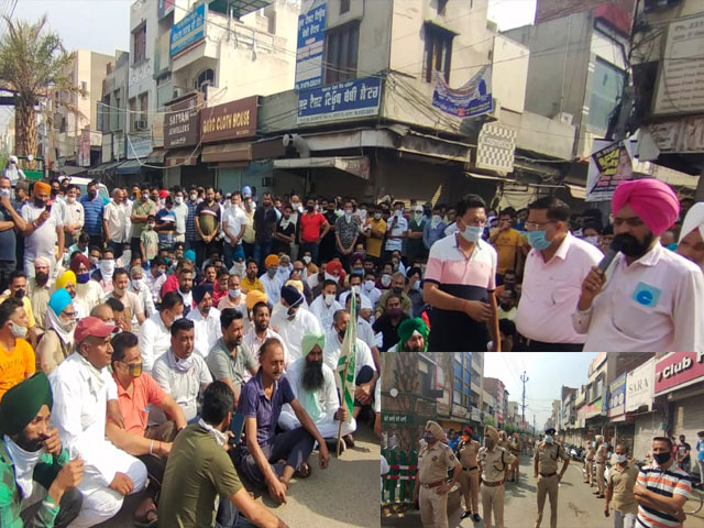 ਬਰਨਾਲਾ, 4 ਮਈ- ਸ਼ਹਿਰ ਬਰਨਾਲਾ ਦੇ ਵਪਾਰੀਆਂ ਵਲੋਂ ਅੱਜ ਸਵੇਰੇ 9 ਵਜੇ ਤੋਂ ਦੁਪਹਿਰ 2 ਵਜੇ ਤੱਕ ਦੁਕਾਨਾਂ ਖੋਲ੍ਹਣ ਦੇ ਕੀਤੇ ਗਏ ਐਲਾਨ ਤਹਿਤ ਦੁਕਾਨਾਂ ਖੋਲ੍ਹਣ ਨੂੰ ਲੈ ਕੇ ਮਾਹੌਲ ਤਣਾਅਪੂਰਨ ਬਣ ਗਿਆ ਅਤੇ ਅੱਜ ਫਿਰ ਵਪਾਰੀਆਂ ਵਲੋਂ ਸਦਰ ਬਾਜ਼ਾਰ ਦੇ ਛੱਤਾ ਖੂਹ ਵਿਖੇ ਤਾਲਾਬੰਦੀ ਦੇ ਵਿਰੋਧ ਵਿਚ ਪੰਜਾਬ ਸਰਕਾਰ ਖ਼ਿਲਾਫ਼ ਧਰਨਾ ਲਾ ਦਿੱਤਾ ਗਿਆ ਇਸ ਮਾਹੌਲ ਦੌਰਾਨ ਜਿੱਥੇ ਵਪਾਰੀਆਂ ਦਾ ਵੱਖ-ਵੱਖ ਰਾਜਸੀ ਪਾਰਟੀਆਂ ਦੇ ਆਗੂ ਅਤੇ ਸਮਾਜਿਕ ਜਥੇਬੰਦੀਆਂ ਸਾਥ ਦੇ ਰਹੀਆਂ ਹਨ ਉਥੇ ਦੂਸਰੇ ਪਾਸੇ ਭਾਰੀ ਗਿਣਤੀ ਵਿਚ ਪੁਲਸ ਫੋਰਸ ਵੀ ਪਹੁੰਚ ਗਈ ਜੋ ਦੁਕਾਨਾਂ ਨਾ ਖੋਲ੍ਹਣ ਸਬੰਧੀ ਵਪਾਰੀਆਂ ਨਾਲ ਗੱਲਬਾਤ ਕਰਦੀ ਪਾਈ ਗਈ।
