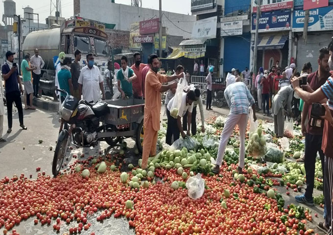 ਭਵਾਨੀਗੜ੍ਹ, 12 ਮਈ – ਭਵਾਨੀਗੜ੍ਹ ਵਿਖੇ ਉਸ ਸਮੇਂ ਮੁੱਖ ਸੜਕ ‘ਤੇ ਹੰਗਾਮਾ ਹੋ ਗਿਆ ਜਦੋਂ ਰੇਹੜੀ ਯੂਨੀਅਨ ਦੇ ਆਗੂਆਂ ਨੇ ਵੱਡੀ ਗਿਣਤੀ ਵਿਚ ਮੁੱਖ ਸੜਕ ‘ਤੇ ਪਹੁੰਚ ਕੇ ਸਬਜ਼ੀਆਂ ਸੜਕ ‘ਤੇ ਸੁੱਟ ਨਾਅਰੇਬਾਜ਼ੀ ਕਰਨੀ ਸ਼ੁਰੂ ਕਰ ਦਿੱਤੀ । ਇਸ ਦੌਰਾਨ ਥਾਣਾ ਮੁਖੀ ਗੁਰਦੀਪ ਸਿੰਘ ਸੰਧੂ ਨੇ ਮੌਕੇ ‘ਤੇ ਪਹੁੰਚ ਕੇ ਐੱਸ. ਡੀ. ਐਮ. ਨਾਲ ਮੀਟਿੰਗ ਕਰਾਉਣ ਦਾ ਭਰੋਸਾ ਦਿਵਾ ਕੇ ਰੇਹੜੀਆਂ ਵਾਲਿਆਂ ਨੂੰ ਸ਼ਾਂਤ ਕੀਤਾ।