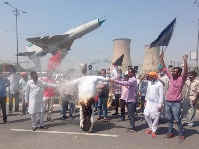 ਬਠਿੰਡਾ, 26 ਮਈ – ਕਿਸਾਨ ਸੰਘਰਸ਼ ਸਮਰਥਨ ਕਮੇਟੀ ਅਤੇ ਭਾਰਤੀ ਕਿਸਾਨ ਯੂਨੀਅਨ ਏਕਤਾ ਉਗਰਾਹਾਂ ਵਲੋਂ ਅੱਜ ਕਾਲਾ ਦਿਨ ਮਨਾਉਣ ਦੇ ਸੱਦੇ ਤਹਿਤ ਕਿਸਾਨ ਮਾਰੂ ਤਿੰਨ ਖੇਤੀ ਕਾਨੂੰਨਾਂ ਦੇ ਵਿਰੋਧ ਵਿਚ ਸਥਾਨਕ ਮਿੰਨੀ ਸੈਕਟਰੀਏਟ ਅੱਗੇ ਰੈਲੀ ਕਰਨ ਉਪਰੰਤ ਮਾਰਚ ਕੱਢਿਆ ਗਿਆ ਅਤੇ ਹਨੂਮਾਨ ਚੌਕ ਵਿਚ ਮੋਦੀ ਸਰਕਾਰ ਦੀ ਅਰਥੀ ਸਾੜ ਕੇ ਰੋਸ ਪ੍ਰਗਟ ਕੀਤਾ । Share Our Daily Posts