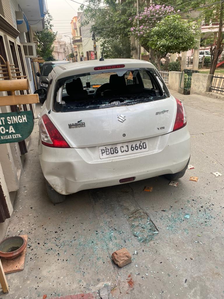 ਜਲੰਧਰ 14 ਜੂਨ – ਗਰੋਵਰ ਕਲੋਨੀ ਵਿੱਚ ਕੁੱਝ ਸ਼ਰਾਰਤੀ ਅਨਸਰਾਂ ਨੇ ਘਰ ਦੇ ਬਾਹਰ ਖੜ੍ਹੀ ਗੱਡੀ ਦੇ ਸ਼ੀਸ਼ੇ ਇੱਟਾਂ ਮਾਰਕੇ ਤੇ ਗੱਡੀ ਦੇ ਬੰਪਰ ਨੂੰ ਲੱਤਾਂ ਮਾਰਕੇ ਤੋੜ ਦਿੱਤਾ ਘਰ ਦਾ ਸਾਰਾ ਪਰਿਵਾਰ ਅਮ੍ਰਿਤਸਰ ਸ੍ਰੀ ਹਰਿਮੰਦਰ ਸਾਹਿਬ ਵਿਖੇ ਮੱਥਾ ਟੇਕਣ ਗਿਆ ਹੋਇਆ ਸੀ ਜਦੋਂ ਪਰਿਵਾਰ ਘਰ ਆਇਆ ਤੇ ਗੱਡੀ ਦਾ ਅਗਲਾ ਤੇ ਪਿਛਲਾ ਸ਼ੀਸ਼ਾ ਇੱਟਾਂ ਮਾਰ ਮਾਰ ਕੇ ਤੋੜਿਆ ਹੋਇਆ ਸੀ