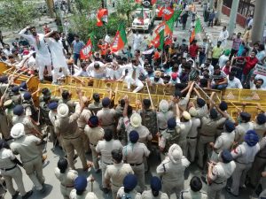 ਪ੍ਰਦਰਸ਼ਨ ਦੀ ਅਗਵਾਈ ਭਾਰਤੀ ਜਨਤਾ ਯੁਵਾ ਮੋਰਚਾ (ਭਾਜਯੂਮੋ) ਦੇ ਪ੍ਰਦੇਸ਼ ਪ੍ਰਧਾਨ ਭਾਨੂ ਪ੍ਰਤਾਪ ਰਾਣਾ ਕਰ ਰਹੇ ਹਨ। ਪ੍ਰਦਰਸ਼ਨ ਲਈ ਪੰਜਾਬ ਤੋਂ ਭਾਜਯੂਮੋ ਵਰਕਰ ਸੈਕਟਰ-17 ਪਰੇਡ ਗਰਾਊਂਡ ‘ਚ ਪਹੁੰਚੇ। ਇੱਥੇ ਪੁਲਿਸ ਪਹਿਲਾਂ ਤੋਂ ਹੀ ਤਾਇਨਾਤ ਸੀ। ਪ੍ਰਦਰਸ਼ਨਕਾਰੀ ਕੈਪਟਨ ਦੀ ਰਿਹਾਇਸ਼ ਵੱਲ ਕੂਚ ਕਰ ਰਹੇ ਸਨ, ਪਰ ਪੁਲਿਸ ਨੇ ਵਾਟਰ ਕੈਨਨ ਦੀ ਵਰਤੋਂ ਕਰਦੇ ਹੋਏ ਉਨ੍ਹਾਂ ਨੂੰ ਉੱਥੇ ਹੀ ਰੋਕ ਦਿੱਤਾ। ਪੁਲਿਸ ਤੇ ਭਾਜਯੂਮੋ ਵਰਕਰਾਂ ‘ਚ ਝੜੱਪ ਵੀ ਹੋਈ।