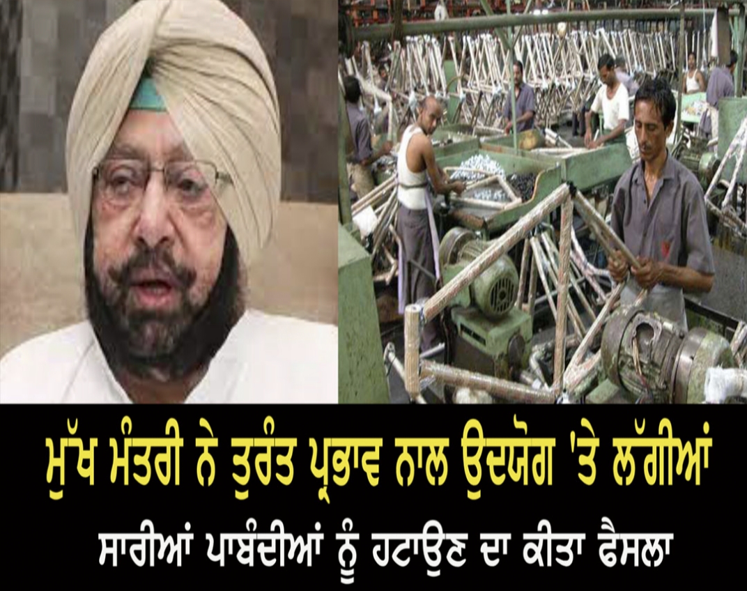 ਚੰਡੀਗੜ੍ਹ ,12 ਜੁਲਾਈ -ਪੰਜਾਬ ਦੇ ਮੁੱਖ ਮੰਤਰੀ ਕੈਪਟਨ ਅਮਰਿੰਦਰ ਸਿੰਘ ਨੇ ਰਾਜ ਵਿਚ ਉਦਯੋਗ ਨੂੰ ਬਿਜਲੀ ਦੀ ਸਪਲਾਈ ‘ਤੇ ਲੱਗੀਆਂ ਸਾਰੀਆਂ ਪਾਬੰਦੀਆਂ ਤੁਰੰਤ ਪ੍ਰਭਾਵ ਨਾਲ ਹਟਾਉਣ ਦਾ ਫੈਸਲਾ ਕੀਤਾ ਹੈ । ਖ਼ਬਰ ਸ਼ੇਅਰ ਕਰੋ Share Our Daily Posts