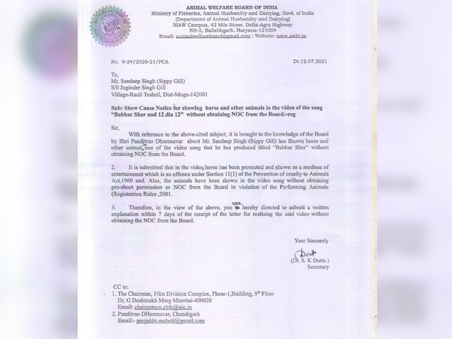 ਨਵੀਂ ਦਿੱਲੀ – ਐਨੀਮਲ ਵੈੱਲਫੇਅਰ ਬੋਰਡ ਆਫ਼ ਇੰਡੀਆ ਦੇ ਵਲੋਂ ਪੰਜਾਬੀ ਗਾਇਕ ਸਿੱਪੀ ਗਿੱਲ ਨੂੰ ਨੋਟਿਸ ਜਾਰੀ ਕੀਤਾ ਗਿਆ ਹੈ ਜਿਸ ਵਿਚ ਉਨ੍ਹਾਂ ਤੋਂ ਆਪਣੇ ਇਕ ਗੀਤ ਵਿਚ ਬਿਨਾਂ ਅਨੁਮਤੀ ਤੋਂ ਦਰਸਾਏ ਗਏ ਜਾਨਵਰਾਂ ਬਾਰੇ ਜਵਾਬ ਮੰਗਿਆ ਗਿਆ ਹੈ . ਸਿੱਪੀ ਗਿੱਲ ਨੂੰ ਇਸ ਦਾ ਜਵਾਬ 7 ਦਿਨਾਂ ਦੇ ਵਿਚ ਦੇਣ ਲਈ ਕਿਹਾ ਗਿਆ ਹੈ Share Our Daily Posts