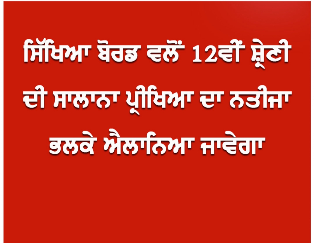 ਐੱਸ. ਏ. ਐੱਸ. ਨਗਰ – ਪੰਜਾਬ ਸਕੂਲ ਸਿੱਖਿਆ ਬੋਰਡ ਵਲੋਂ 12ਵੀਂ ਸ਼੍ਰੇਣੀ ਦੀ ਸਾਲਾਨਾ ਪ੍ਰੀਖਿਆ ਮਾਰਚ 2021 ਦਾ ਨਤੀਜਾ ਕੱਲ੍ਹ 30 ਜੁਲਾਈ ਨੂੰ ਐਲਾਨਿਆ ਜਾਵੇਗਾ। ਇਸ ਸੰਬੰਧੀ ਜਾਣਕਾਰੀ ਦਿੰਦਿਆਂ ਬੋਰਡ ਦੇ ਚੇਅਰਮੈਨ ਡਾ. ਯੋਗਰਾਜ ਨੇ ਦੱਸਿਆ ਕਿ ਮਾਨਯੋਗ ਸੁਪਰੀਮ ਕੋਰਟ ਵਲੋਂ ਜਾਰੀ ਦਿਸ਼ਾ ਨਿਰਦੇਸ਼ਾਂ ਅਨੁਸਾਰ 12ਵੀਂ ਸ਼੍ਰੇਣੀ ਦਾ ਨਤੀਜਾ 30 ਜੁਲਾਈ ਨੂੰ ਬਾਅਦ ਦੁਪਹਿਰ ਢਾਈ ਵਜੇ ਐਲਾਨਿਆ ਜਾ ਰਿਹਾ ਹੈ।