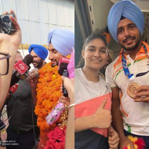 ਟੋਕੀਓ ਓਲੰਪਿਕ ਵਿਚ ਸ਼ਾਨਦਾਰ ਪ੍ਰਦਰਸ਼ਨ ਕਰ ਕੇ ਵਾਪਸ ਪਰਤੇ ਹਾਕੀ ਖਿਡਾਰੀਆਂ ਦਾ ਸ੍ਰੀ ਗੁਰੂ ਰਾਮਦਾਸ ਅੰਤਰਰਾਸ਼ਟਰੀ ਏਅਰਪੋਰਟ ਉੱਤੇ ਢੋਲ ਦੇ ਡਗੇ ‘ਤੇ ਜ਼ੋਰਦਾਰ ਸਵਾਗਤ ਕੀਤਾ ਗਿਆ। ਜਿਉਂ ਹੀ ਹਾਕੀ ਖਿਡਾਰੀ ਏਅਰਪੋਰਟ ਤੋਂ ਬਾਹਰ ਨਿਕਲੇ ‘ਬੋਲੇ ਸੋ ਨਿਹਾਲ’ ਦੇ ਜੈਕਾਰਿਆਂ ਨਾਲ ਏਅਰਪੋਰਟ ਗੂੰਜ ਉੱਠਿਆ। ਹਾਕੀ ਖਿਡਾਰੀਆਂ ਦੇ ਗਲਾਂ ਵਿੱਚ ਹਾਰ ਪਾ ਕੇ ਉਨ੍ਹਾਂ ਦਾ ਸਵਾਗਤ ਕੀਤਾ ਗਿਆ। ਅੰਮ੍ਰਿਤਸਰ ਏਅਰਪੋਰਟ ਉੱਤੇ ਪੁੱਜੇ ਖਿਡਾਰੀਆਂ ਵਿੱਚ ਸ਼ਮਸ਼ੇਰ ਸਿੰਘ, ਮਨਪ੍ਰੀਤ ਸਿੰਘ, ਹਰਮਨਪ੍ਰੀਤ ਸਿੰਘ, ਰੁਪਿੰਦਰਪਾਲ ਸਿੰਘ, ਮਨਦੀਪ ਸਿੰਘ, ਵਰੁਣ ਕੁਮਾਰ, ਦਿਲਪ੍ਰੀਤ ਸਿੰਘ, ਗੁਰਜੰਟ ਸਿੰਘ, ਹਾਰਦਿਕ ਸਿੰਘ, ਕ੍ਰਿਸ਼ਨ ਸਿਮਰਨਜੀਤ ਸਿੰਘ, ਗੁਰਜੀਤ ਕੌਰ ਆਦਿ ਸ਼ਾਮਲ ਸਨ।